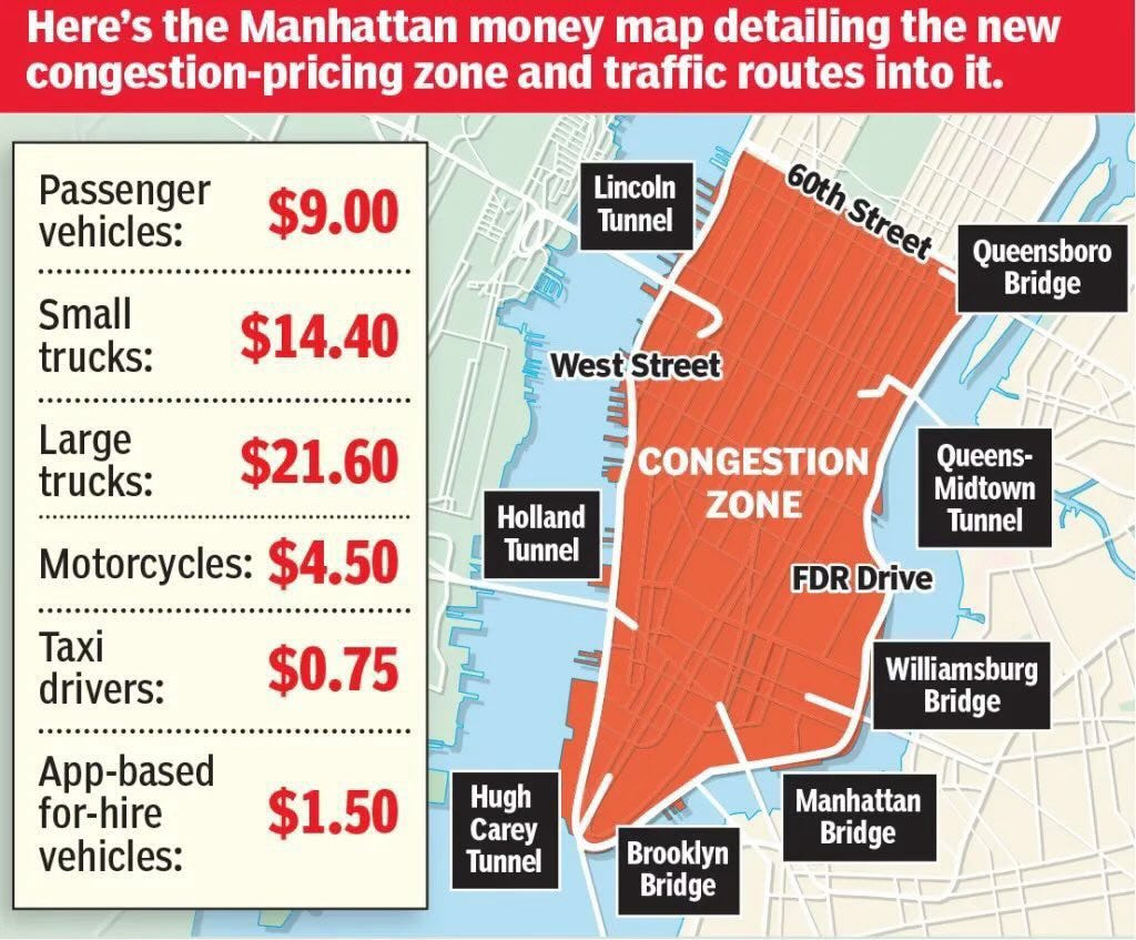 “Plumbers, electricians, etc., will pass on their congestion pricing costs to their customers,” says Gustavo Figueredo, an electrician from Maspeth, Queens, whose cost of doing business just got a lot higher. “Deliveries will cost more, too. Hence, even if you do not drive, you will pay for it.”