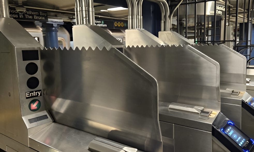 Commuters were stunned to find that the Metropolitan Transportation Authority (MTA) has installed metal spikes on turnstiles at the Lexington Avenue/59th Street subway station. Presumably, these spikes are designed to deter individuals from jumping over turnstiles by adding a physical barrier that could cause pain upon contact.